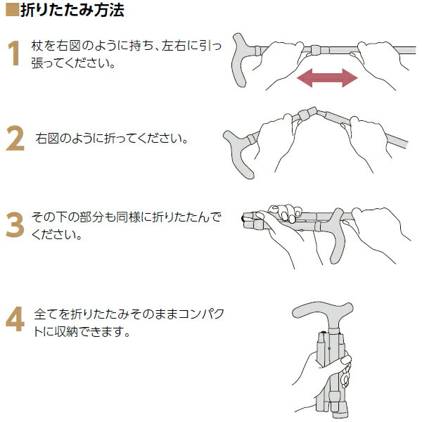 使わない時はコンパクトに折りたためるので、使用しない時はかさばらず収納しやすい杖です。
