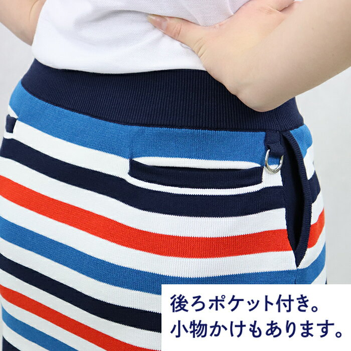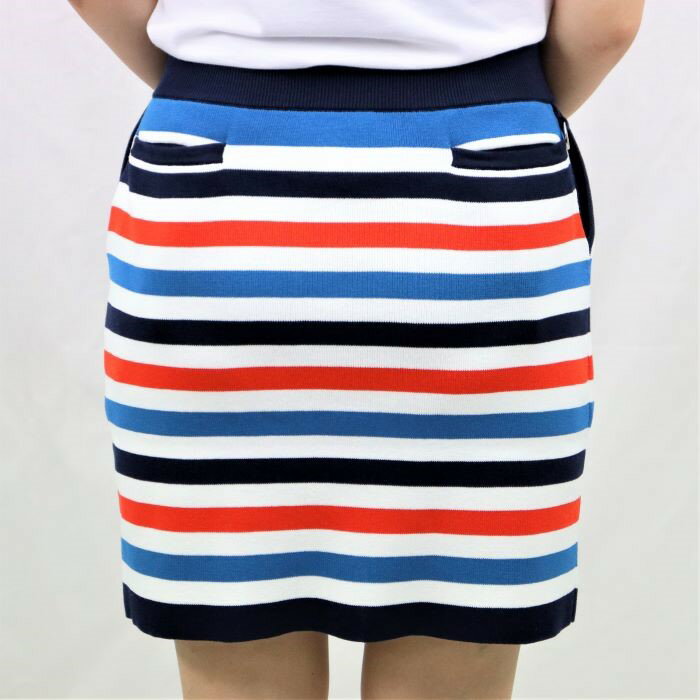 マルチボーダースカート sandie サンディ ゴルフレディーススカート ネイビー 紺 オレンジ ブルー ボーダー 綿 コットン かわいい おしゃれ 洗濯可 吸水速乾 UVカット セット インナーパンツ付 Mサイズ Lサイズ